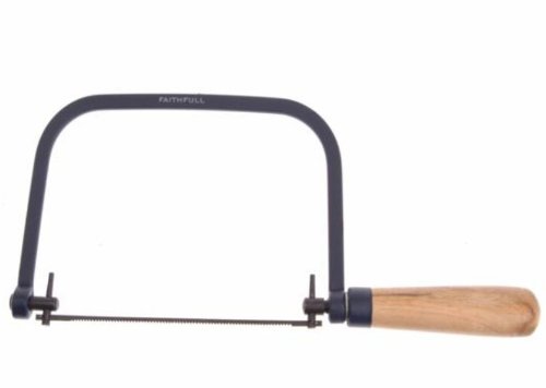 The Faithfull FAICS Coping Saw featuring a high quality powder coated steel frame and fitted with a rounded wooden handle for user comfort.