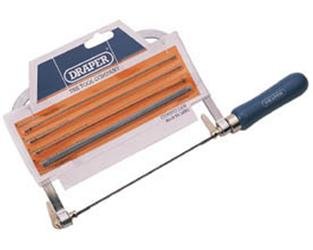 Chrome-plated frame with wooden handle . Supplied with five assorted blades. Blade can be turned through 360 degrees for intricate work.